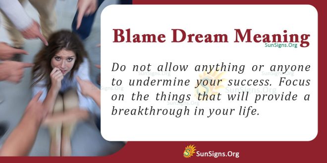 Based on the blame dream symbolism, blaming yourself in your dreams signifies doubt in yourself and your abilities. It also signifies disturbance and fear. Do not allow your fears to eat you up. Find the confidence to deal with your problems, fears, and challenges. Trust that you have everything under control.