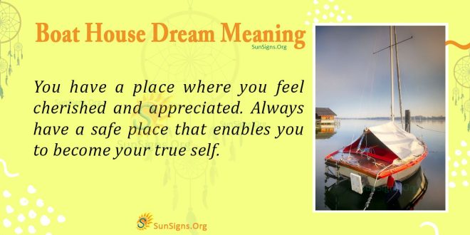 Seeing the boat house dream symbol signifies peace and serenity. You have a place where you feel cherished and appreciated. Always have a safe place where you can be your true self.