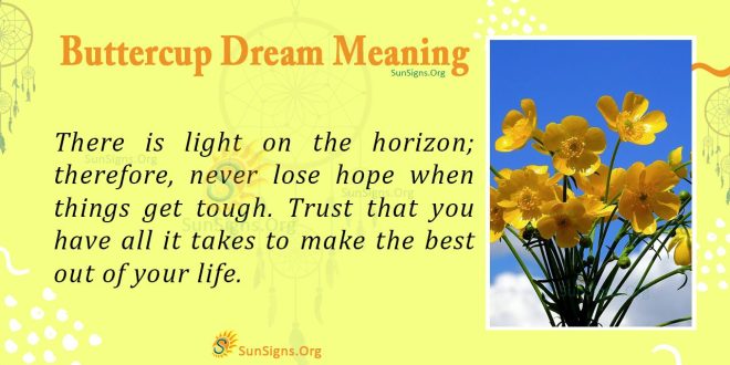The buttercup dream symbol calls on you to make decisions that will enable you to create a bright future. Everything in your life will succeed with the right approach.