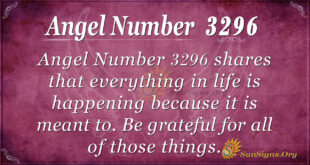 Angel Number 3296 shares that.everytjing in life is happening because it is meant to. be grateful for all of those things.,