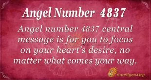 Angel number 4837 central message is for you to focus on your heart’s desire, no matter what comes your way.