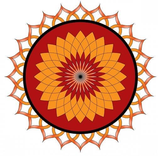 Moving up the body only slightly, the next chakra is located in the genitals. Swadhisthana, or sacrum, is the sacral chakra mandala that governs the reproductive organs of our bodies, whether male or female, in addition to influencing our sense of taste. This area’s element is water, even though its color is orange. With the mantra, “vam,” sacrum allows us to access our fiery creativity.