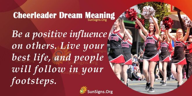 According to the cheerleader dream analysis, dreaming of seeing cheerleaders means that you should look to others for inspiration, guidance, and motivation. Be optimistic and follow the guidance of influential people who know better. Focus on being around those who offer positive change.