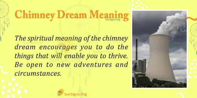 The spiritual meaning of the chimney dream encourages you to do the things that will enable you to thrive. Be open to new adventures and circumstances. Learn important lessons and skills from others that will enable you to reach your full potential.
