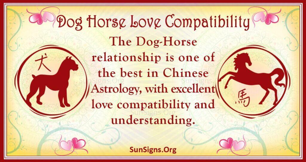 The Chinese sign Horse requires freedom, and the Dog can become emotionally unstable from time to time and require time to itself to recuperate. These two tendencies can coincide quite well and help to build good business compatibility or love compatibility for a lasting Dog and Horse marriage.
