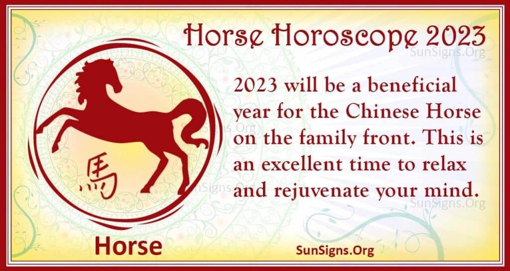 Chinese horoscope 2023 predictions for the Horse suggest an excellent year. There will be good progress on the various aspects of life such as career, love, and social activities. Financial investments will yield good returns. Overall progress in life will be fabulous without any serious obstacles. The Horse can expect windfalls and happiness from unexpected sources.