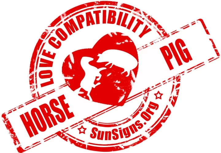 According to Chinese horoscope compatibility, the male or female Pigs are happiest in a peaceful, constant homestead. The male or female Horses tend to gravitate toward the opposite conditions due in part to their higher intensity and sharp mind. They will jump from one thing to another, always moving.