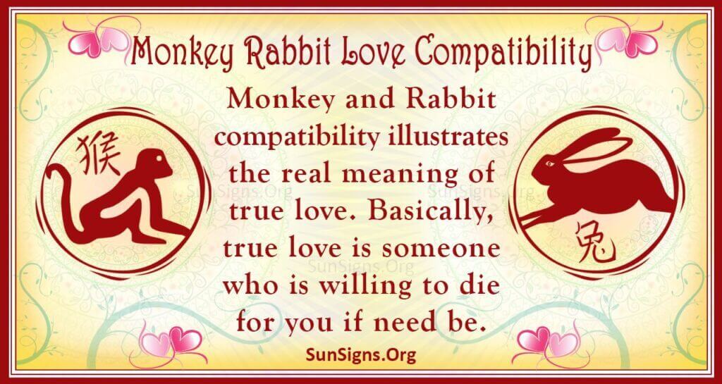 Monkey and Rabbit compatibility illustrates the real meaning of true love. True love is someone willing to die for you if need be. In other words, you are both in a relationship where you cannot leave each other because of love. Love always wins whenever you meet your soulmate because that is crucial to every relationship.