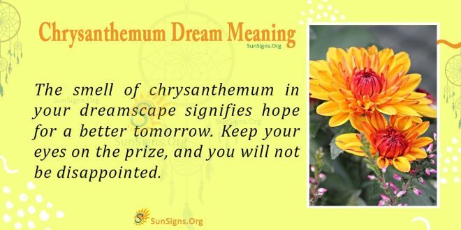 The smell of chrysanthemums in your dreams signifies hope for a better tomorrow. Keep your eyes on the prize, and you will not be disappointed.