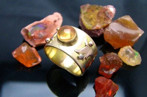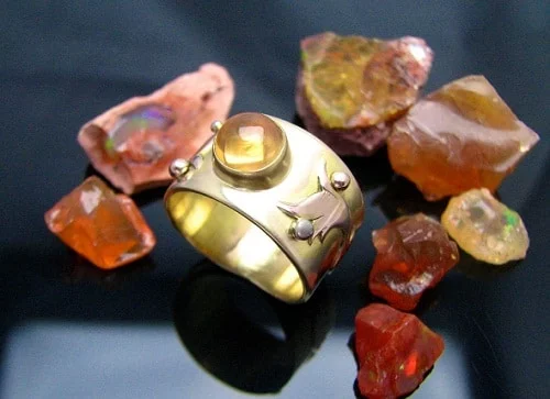 Opal is a form of quartz and is a combination of both silica and water. It will not form in areas with little water, and the finished stone can crack if allowed to get too dry. In this sense, the Opal gemstone can be used to balance out our earthy associations by providing some fluidity to it. Its semi-translucent nature allows you to see clearly in the face of emotion.