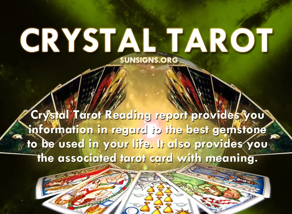 The Crystal Tarot Reading report provides you with information regarding the best gemstone to be used in your life. It also will provide you with the tarot card for that particular crystal together with its meaning.