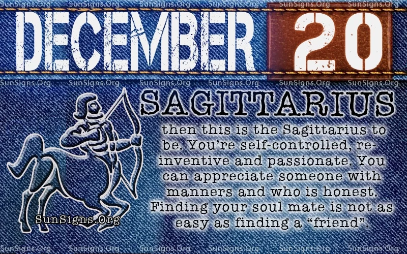 DECEMBER 20 birthday horoscope predicts that you are the person everyone wants to be. This Sagittarius born today knows how to blend in according to the situation. This quality could be closely related to your psychic abilities. You can be exceptionally successful. You always know what will work for you and what won’t.
