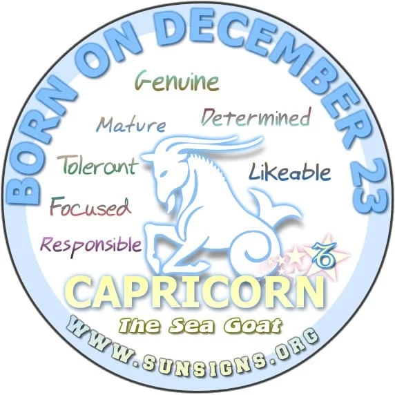 DECEMBER 23 birthday horoscope predicts that you are a Capricorn who does things within your boundaries. The key to having your cake and eating too is in moderation or so you say. It makes sense to someone born on this birthday. You do not believe in extremes.