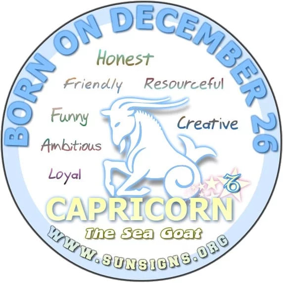 The DECEMBER 26 birthday horoscope predicts that you are an honest Capricorn who is loyal and ambitious. On the other hand, you are described as a “rebellious soul,” a non-conformist from birth, some would say. You like to do things differently from other people, yet you remain responsible and strong. You are not one to be scared of taking risks.
