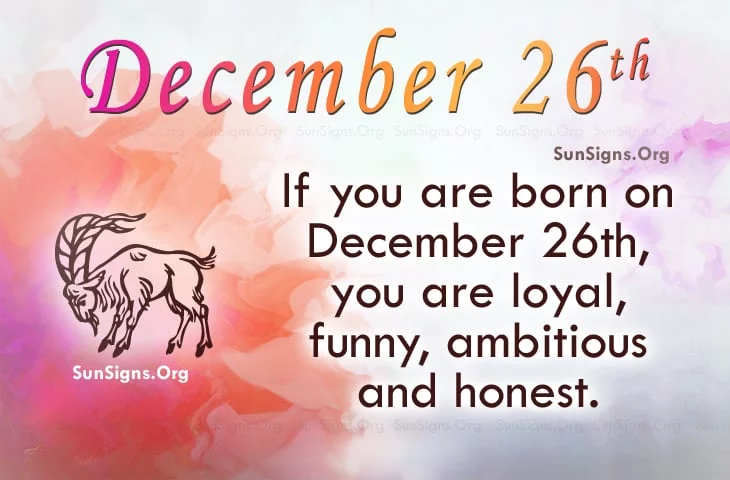 Famous people born on DECEMBER 26th are Capricorn who are loyal but rebellious. They will be going places and they have many projects on hand. If they could say “no,” they’d likely finish those they start. This can be as stressful as they find dating although others find their jokes funny.