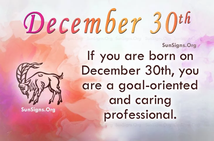 Famous people born on DECEMBER 30 are goal oriented. As a Capricorn, they are professionals. They will spend the time and make the compromises necessary to get the job done. They see the bigger picture and realize that retirement is always closer than we think. So they prepare for it while they are young.