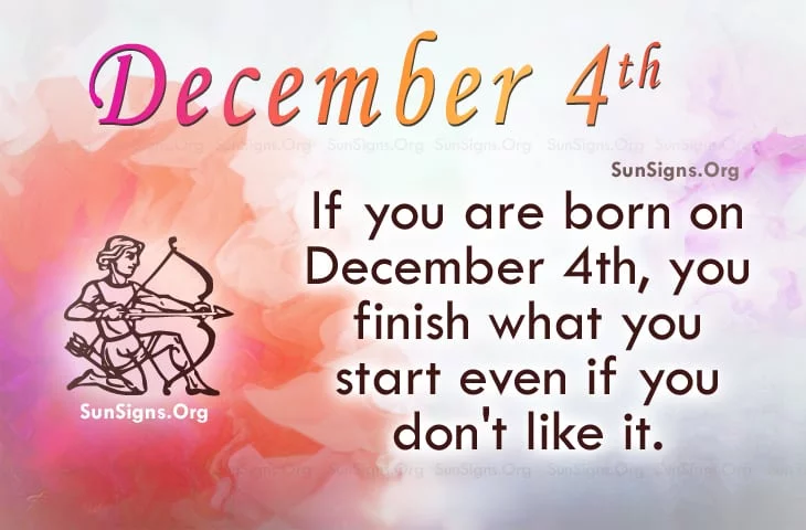 Famous people born on DECEMBER 4 do things that are not necessarily to their liking but you don’t gripe about it. It’s the kind of thing that makes them an exceptional Sagittarius. They realize it’s not a perfect world but they do it to make it a better place.