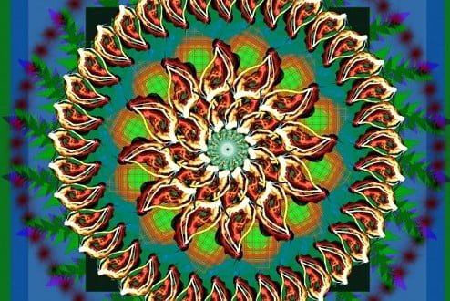In Sanskrit, the word chakra refers to a wheel, which is obviously the same shape as (and thus shares a similar meaning to) a circle. Additionally, In the Indian tradition, which uses chakras quite frequently, the seven prime energy sources of the body are represented in a visual and artistic sense by chakras. Also, In English, they refer to the root chakra, sacral chakra, solar plexus chakra, heart chakra, throat chakra, third eye chakra, and crown chakra, in order from the lower part of the body up to the top. Thus, chakras can act as energy-themed mandalas.
