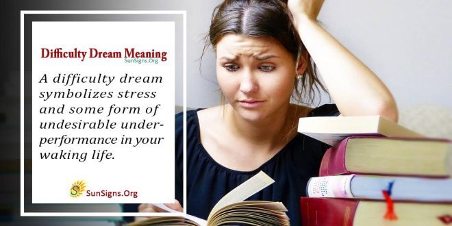 Significantly, seeing difficulties in your dream symbolize stress and some form of undesirable underperformance in your waking life. However, one dream may mean several things depending on who the dreamer is and the situation surrounding the vision. Therefore, recollect all the dream elements before interpreting your revelation for precision.