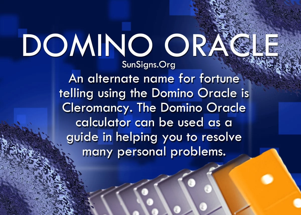 An alternate name for divination by Domino is Cleromancy. With this type of Oracle, it is usual to ask a very specific question. The Domino Oracle calculator can be used as a guide in helping you to resolve concerns.