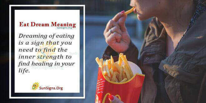 What does an eating dream mean? Popularly, this dream means that you lack nutrition in your waking life, thus affecting your health. This dream is familiar to people on a diet or people who love eating. This dream is also a sign that you cannot take care of your basic needs.