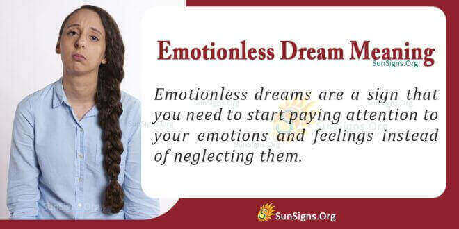 What does an emotionless dream mean? This dream is a sign that you are shutting yourself off from people around you in your waking life. You need to start paying attention to the things happening in your life. Accept that you need people in your life to guide, help, and support you when you are in need. You need not do things and suffer on your own when you have people to rely on.