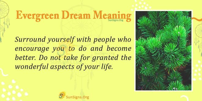 Dreams about evergreens mean nurturing the friendships in your life. Surround yourself with people who encourage you to do and become better. Do not take for granted the wonderful aspects of your life.