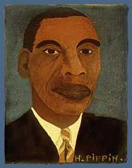 With his work often categorized as folk art, Horace Pippin portrayed scenes of African-American life as seen in Domino players (1943) and Harmonizing (1944). His self – a portrait painted in 1941, became one of his famous paintings. In 1942, he painted John Brown Going to his Hanging which is among the collection of the Pennsylvania Academy of Fine Arts, Philadelphia.