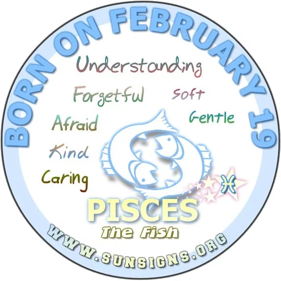 Pisces individuals with a February 19 birthday are compassionate and very understanding. You are sought after by many people. You do not like to argue with people. However, Pisces, you need to be firm when expressing your feelings.
