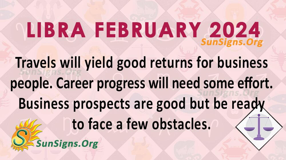 Career progress will be excellent with good rewards on account of money and position. Completing targets will be a breeze. Finances will face turbulence for the Virgo in February 2024. It is advisable to postpone all expansion plans and focus on existing ventures. Family relationships present a happy picture with good relationships with elders and children. Family finances also will be on the upswing. Intimacy will prevail in marital relationships. This is a good month to plan for a child.