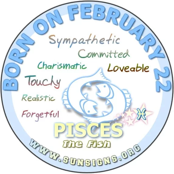 IF YOU HAVE A FEBRUARY 22 BIRTHDAY, your zodiac sign is Pisces. You are complicated, but there is a mild-mannered, loveable Pisces behind all of that. This personality can be in tune with your emotions and, more often than not, show sympathy to others. You are emotionally intense.