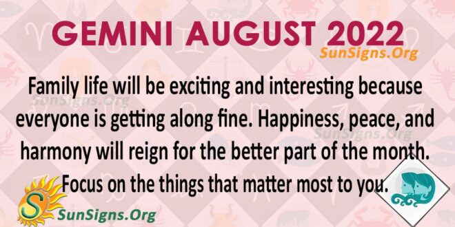 Gemini August 2022 Horoscope foretells a period filled with love, happiness and positive affirmations that will push you to become better. Never settle for less in life. At all times, do after the things you are passionate about. Surround yourself with people that influence your life positively and want the best for you.