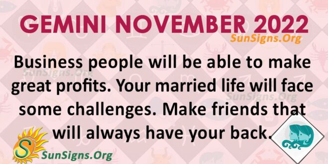 November 2022 Horoscope for Gemini wants you to appreciate your partner for their presence in your life and all they do to make you better. This month you will realize that your sex life matters a lot, and you need not ignore the same if you want a healthy and romance-filled relationship.