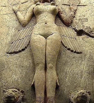 Inanna’s symbol is always seen as a young woman, probably in her early twenties. They often depict her as a reed bundle or a gatepost to show fertility, abundance, and procreation. Her naked appearance is a symbol of fertility and femininity.