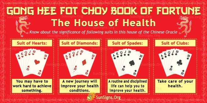 Let us understand more about the different suits of playing cards in the house of Health of the Gong Hee Fot Choy Chinese Oracle.