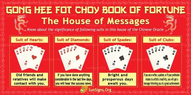 Let us understand more about the different suits of playing cards in the House of Messages of the Gong Hee Fot Choy Chinese Oracle.