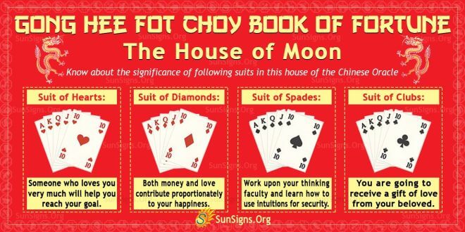 Let us understand more about the different suits of playing cards in the house of Moon of the Gong Hee Fot Choy Chinese Oracle.