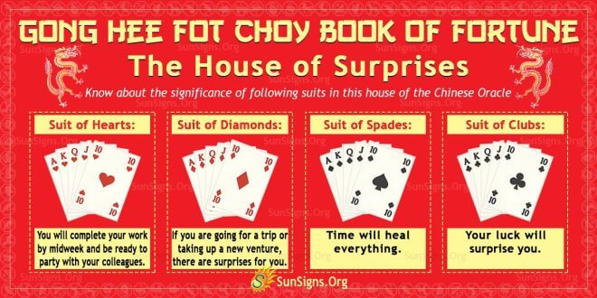 Let us understand more about the different suits of playing cards in the house of Surprises of the Gong Hee Fot Choy Chinese Oracle.