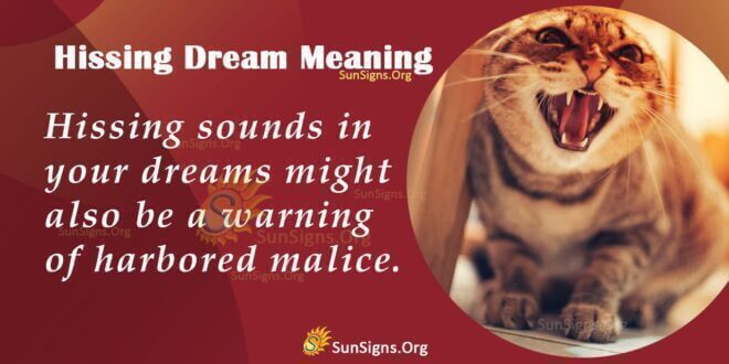 What does it mean when you dream of hissing? A hissing dream is a sign that you need to control your temper to avoid getting into trouble. Do not act without thinking of the consequences of your actions.