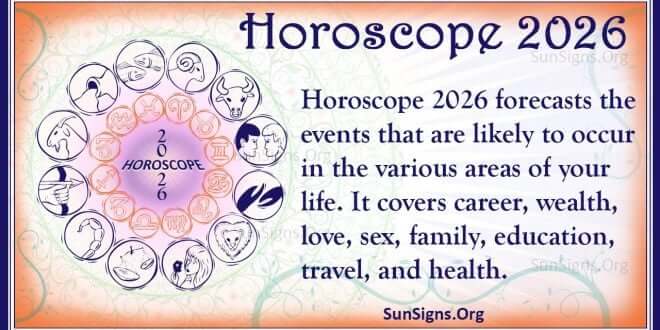 SunSigns.Org is happy to offer you the Horoscope 2026 for the different zodiacs. This yearly horoscope gives the forecast for the events that are likely to occur in the various areas of life in 2026. It covers career, finance, love and sex, family relations, education, travel, and health.