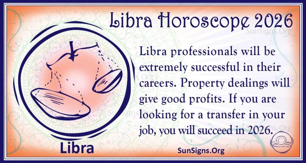 Libra professionals will be extremely successful in their careers due to the combined influences of Jupiter and Saturn in the Year 2026. Planetary aspects will help you to accumulate wealth and savings. Property dealings will give good profits. If you are looking for a transfer in your job, you will succeed this year.