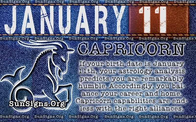 JANUARY 11 Birthday horoscope predicts that you will make a great philosopher. You have always pondered about what is beyond what the eyes can see. Not accepting the broken promises you thought life would bring, you made a way out of no way. You are a remarkable being. If you are wondering what the zodiac sign is January 11, then you are a Capricorn! This sea goat is one intelligent being.