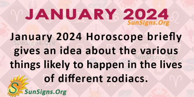 January 2024 Monthly Horoscope covers the various aspects of life for all the zodiacs from Aries to Pisces. It gives an idea about the likely events in the various areas of life such as career, finance, health, and relationships. Be happy to celebrate the good events and be prepared to face any difficulties you may encounter.