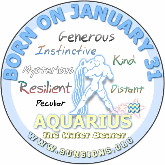However, no strangers to disappointment, Aquarians with a January 31 birthday have resilience. Once you make your mind up, you open doors. You have strong instinctive qualities. You would make an excellent financial consultant. People naturally trust your opinion and ask for it.