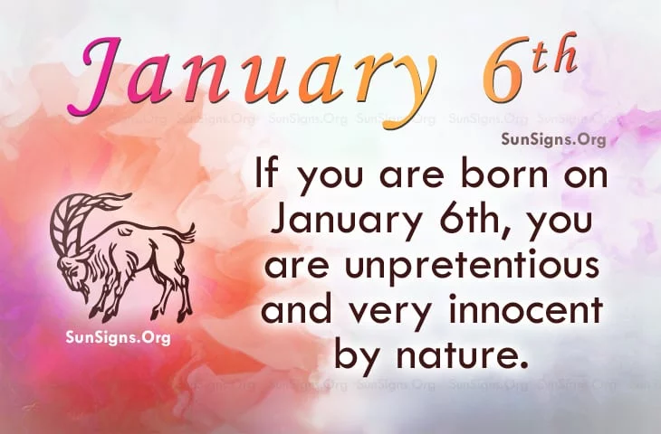 Famous Capricorns born on January 6 maintain healthy lifestyles. Those born on this day are likely to be understated artists whose creativity can be stifled. The personality of a Capricorn born on the 6th is one that is tender and joyful. Typically, they avoid negativity. Despite their best efforts, their birthday horoscope says they may be idealistic and perhaps, commitaphobic.