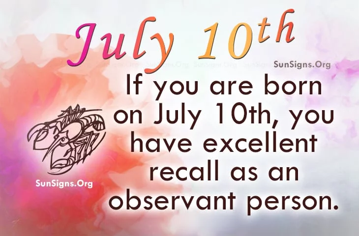 Famous birthdays of JULY 10 are ruled by the Moon. As a Cancer, the Moon represents their sixth sense, visions and thoughts. They have excellent recall as an observant person.