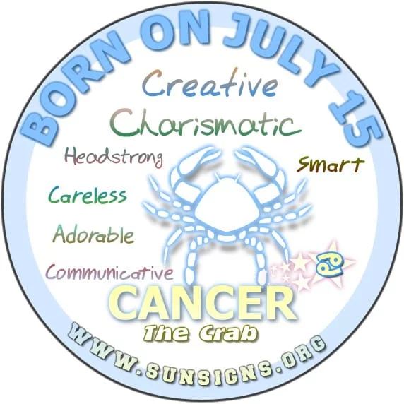 JULY 15 birthday horoscope shows that you are affected by the moon, which can determine what kind of day or life a Cancer zodiac sign person will have. Those born on this day can be easily influenced. The July 15 birthday personality can be happy if they would let go of the past. Holding on to troubling issues will only make your future difficult.