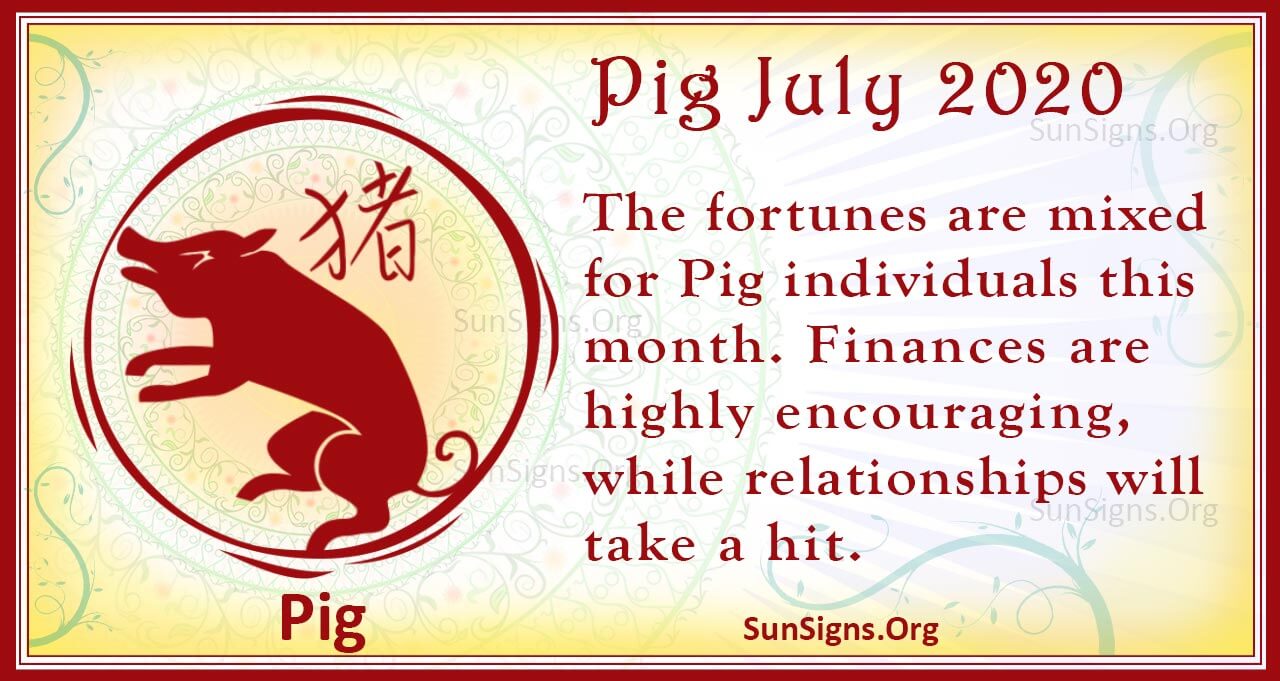The fortunes are mixed for Pig individuals this month. Finances are highly encouraging while relationships will take a hit.