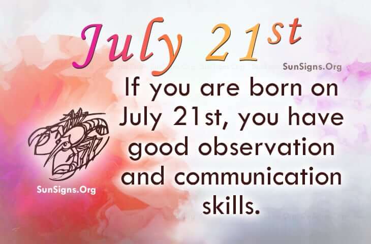 Famous people born on JULY 21 are born under the zodiac sign Cancer. This personality is filled with many qualities such as communication and observation skills which are accompanied with lots and lots of energy.
