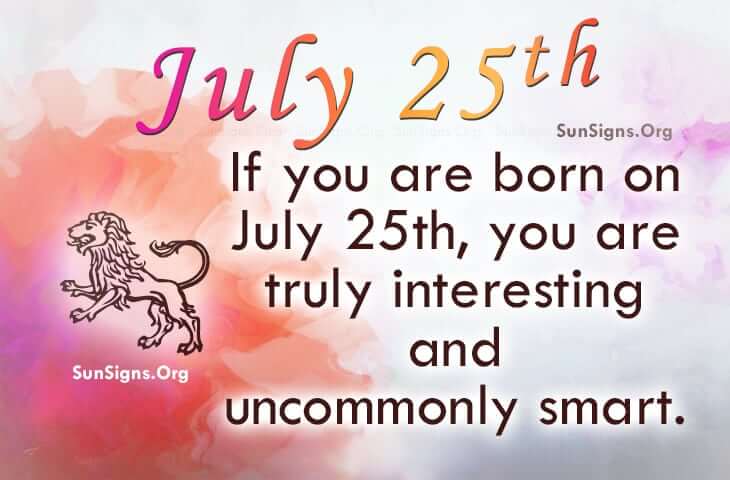 Famous people born on JULY 25 are Leos who are pretty awesome. They are truly interesting and uncommonly smart. Yes… they could be described as the geek or nerdy Lion. Needless to say they have a world of knowledge and they have a need to share.